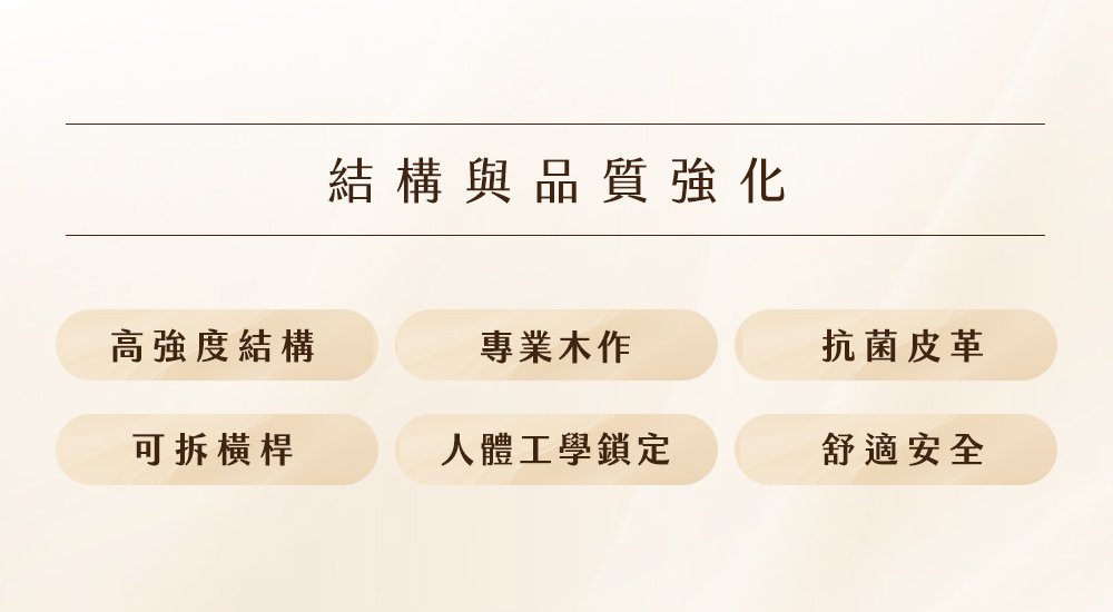 ➢抗菌皮革 採用一級抗菌皮革,兼具舒適觸感與衛生防護。