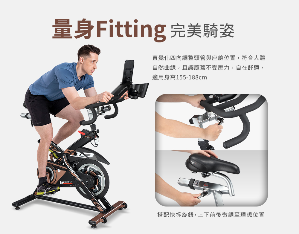 應用世界三大環賽的參賽技術經驗,BH在單身訓練的產品技術是世界前沿的技術,飛輪車和智能單車都是BH競賽技術應用的體現產品,提供健身和單車訓練的專業需求,在全車身EDP塗層應用,人因工程幾何設計、傳動整合以及雲端科技應用,屬於BH飛輪車產品的優勢。