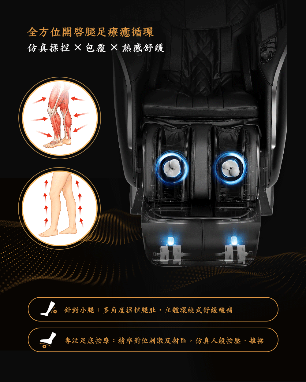 促進關節靈活性:按摩椅的伸展功能有助於促進關節的靈活性,特別適合長期久坐或缺乏運動的人,防止關節僵硬。