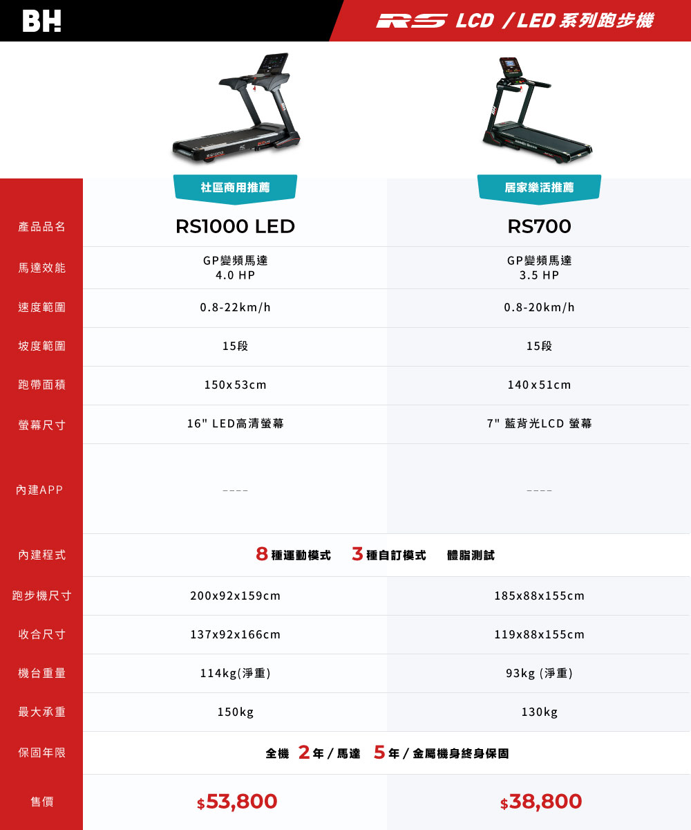 預購【BH】G6179LED RS1000 LED 變頻跑步機