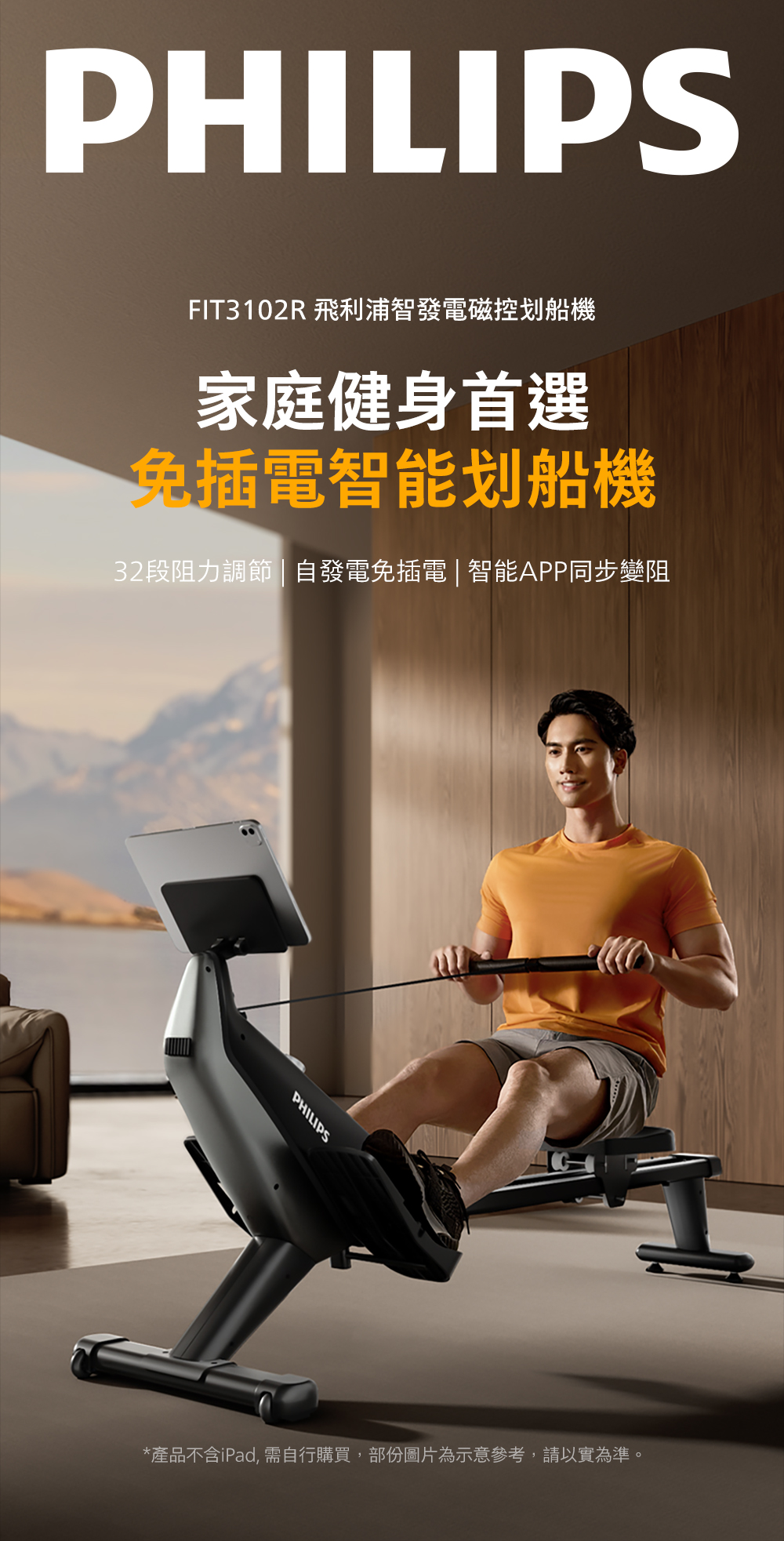 【PHILIPS】FIT3102R 飛利浦智發電磁控划船機-小鯊魚