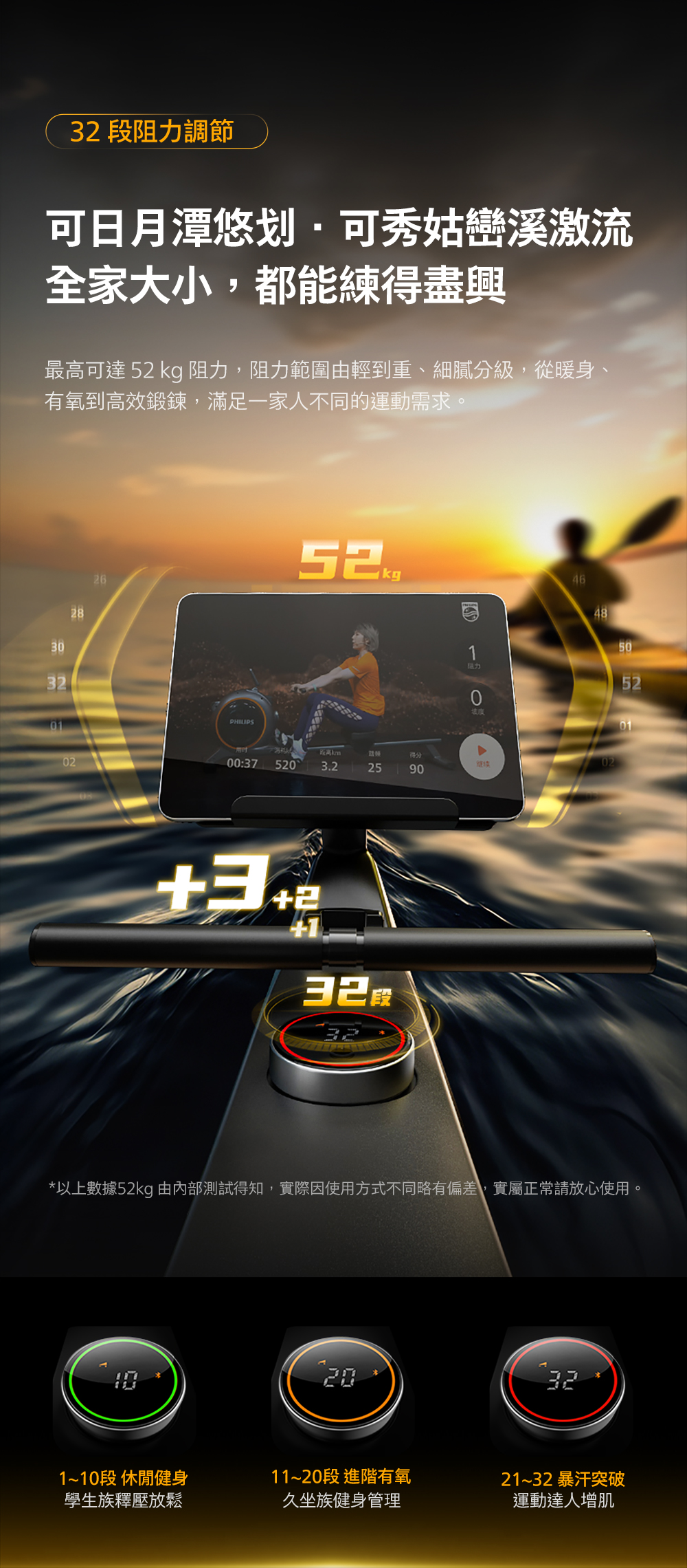 32段精細阻力調整,滿足全家運動需求