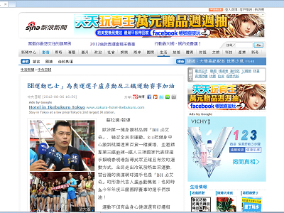 2012/08/06 新浪新聞網-BH運動巴士 為奧運選手盧彥勳及三鐵運動賽事加油