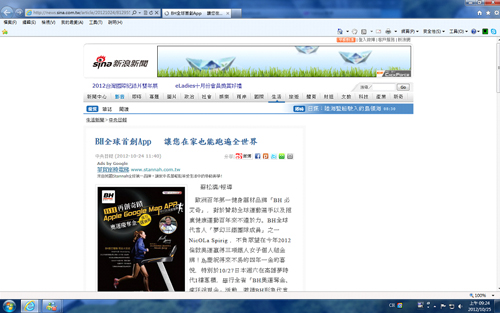 2012/10/24 中央日報/新浪- BH全球首創App 讓您在家也能跑遍全世界