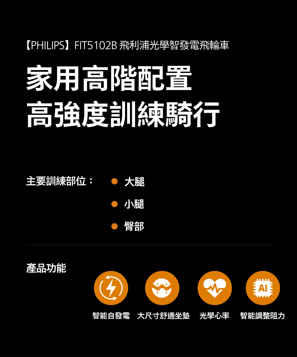 【PHILIPS】FIT5102B 飛利浦光學智發電飛輪車-小黑馬
