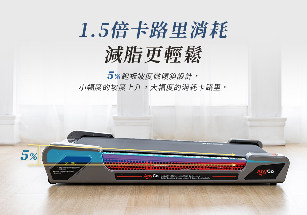 5%坡度設計,卡路里消耗1.5倍