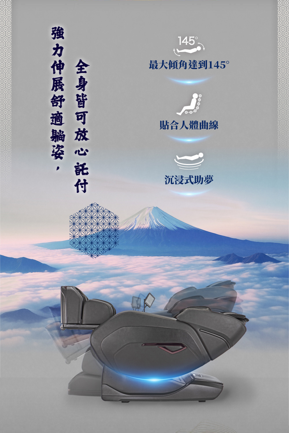 透過零重力功能,按摩椅可移動至緩解壓力的傾斜位置,這對脊椎和關節提供額外的保護。