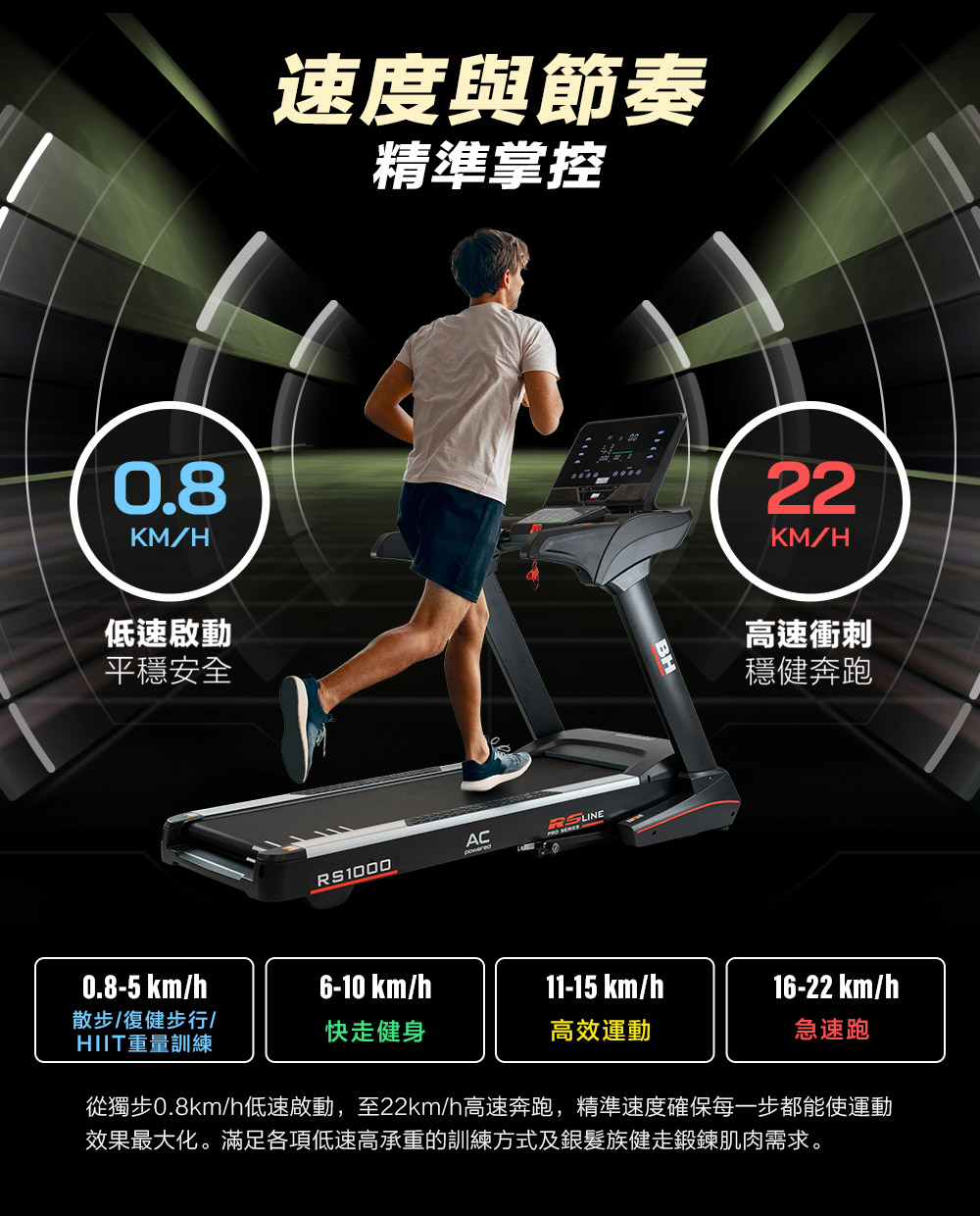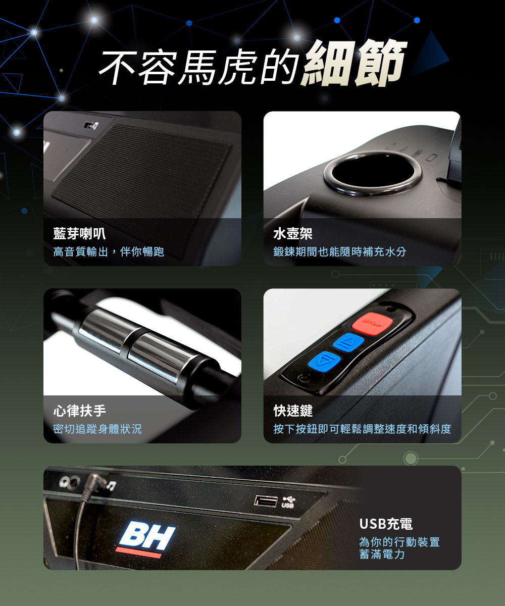 BH的跑步機產品系列一直都是科技應用的領先者,持續技術投入研發,讓BH跑步機在核心機電整合到雲端智能應用技術,以及避震功能都是技術的領先者。