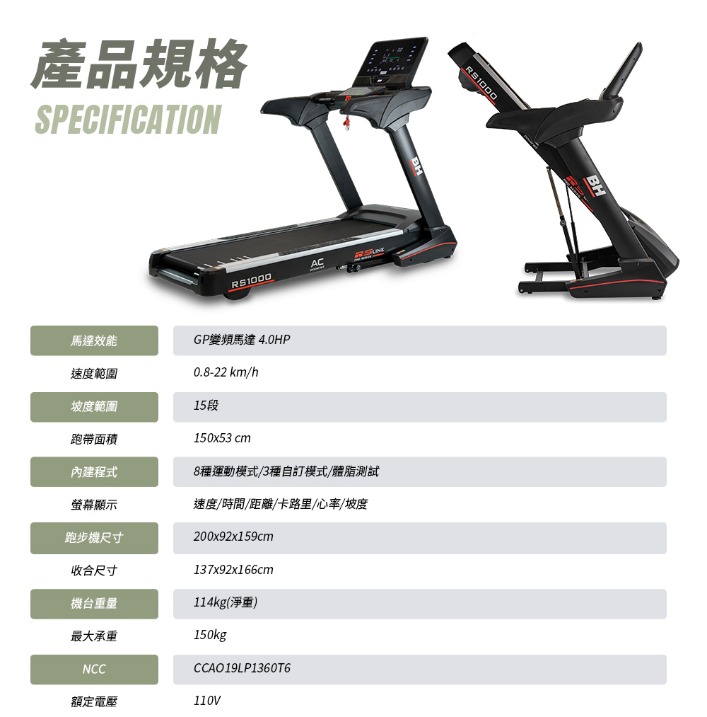 預購【BH】G6179LED RS1000 LED 變頻跑步機