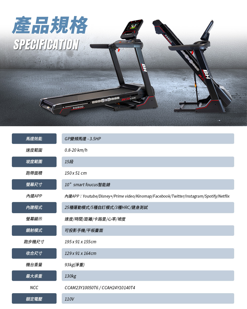 【BH】RS800 TFT 智能變頻跑步機