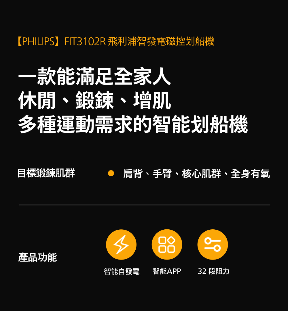 【PHILIPS】FIT3102R 飛利浦智發電磁控划船機-小鯊魚