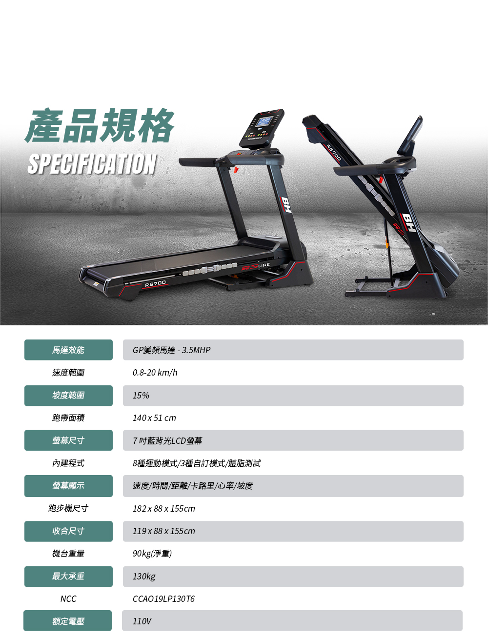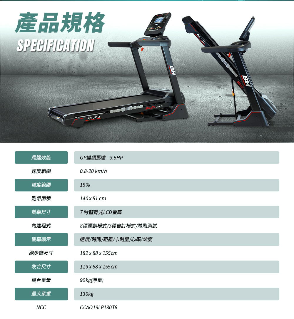【BH】RS700 LCD 變頻跑步機